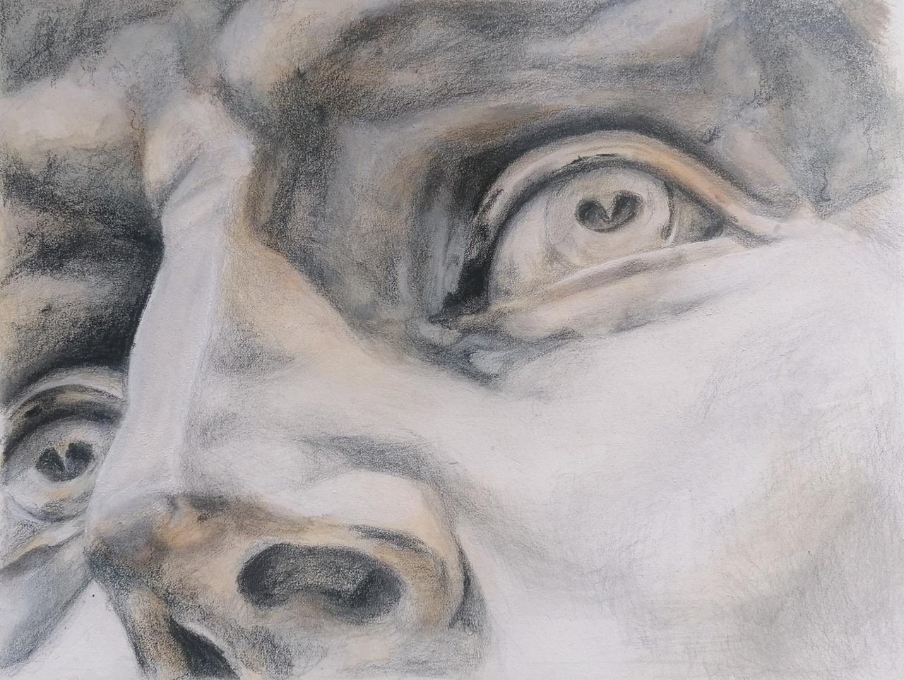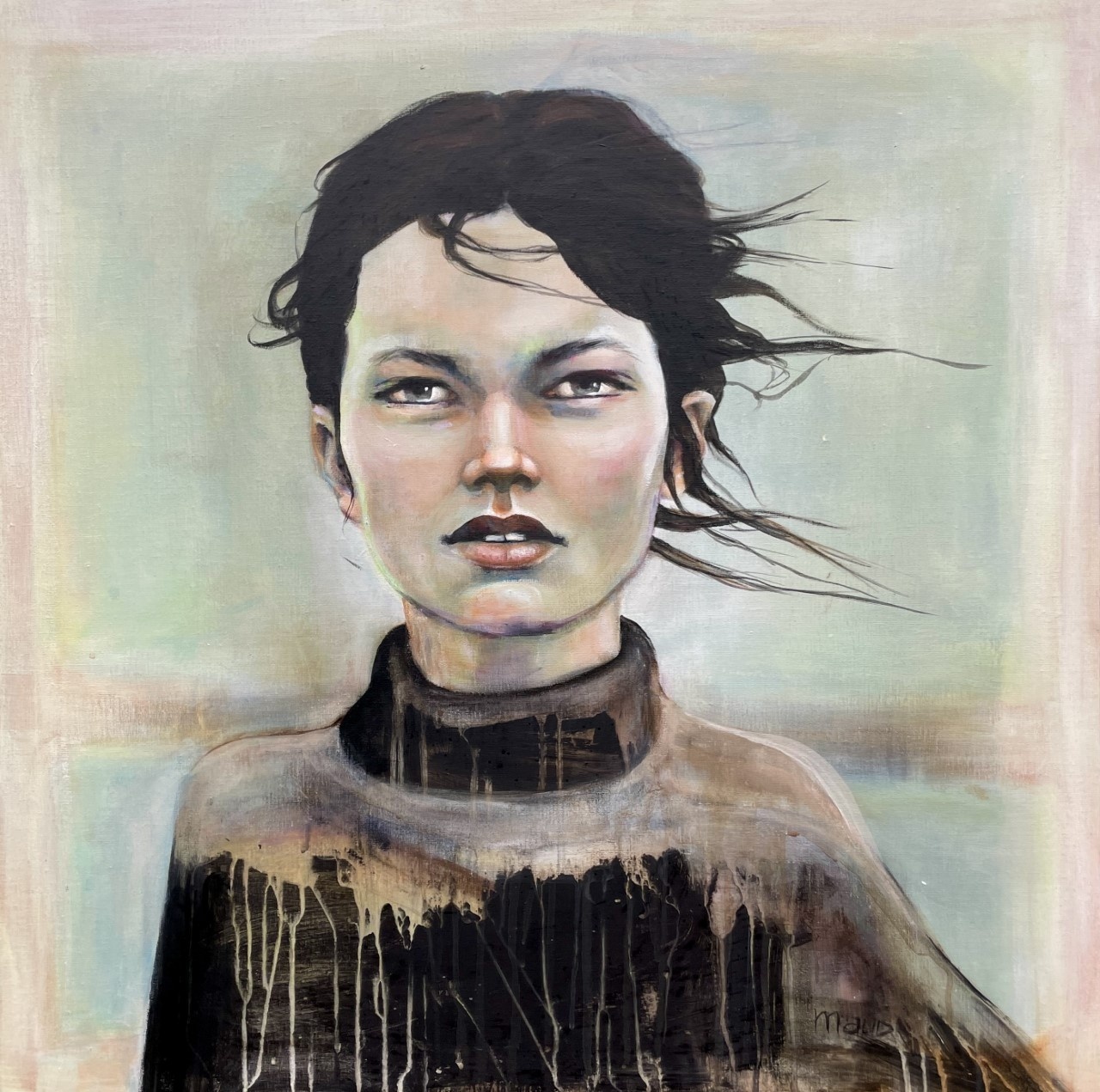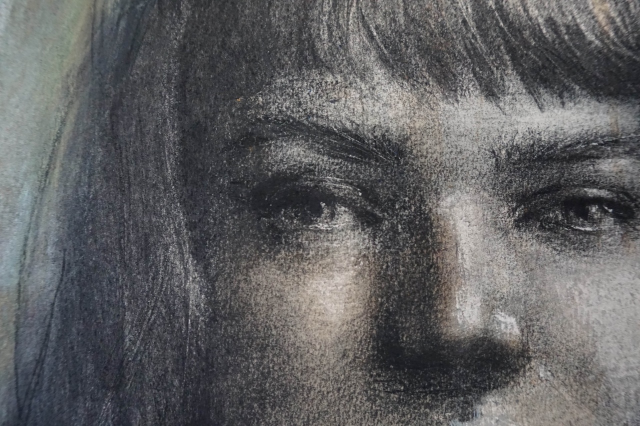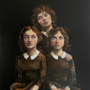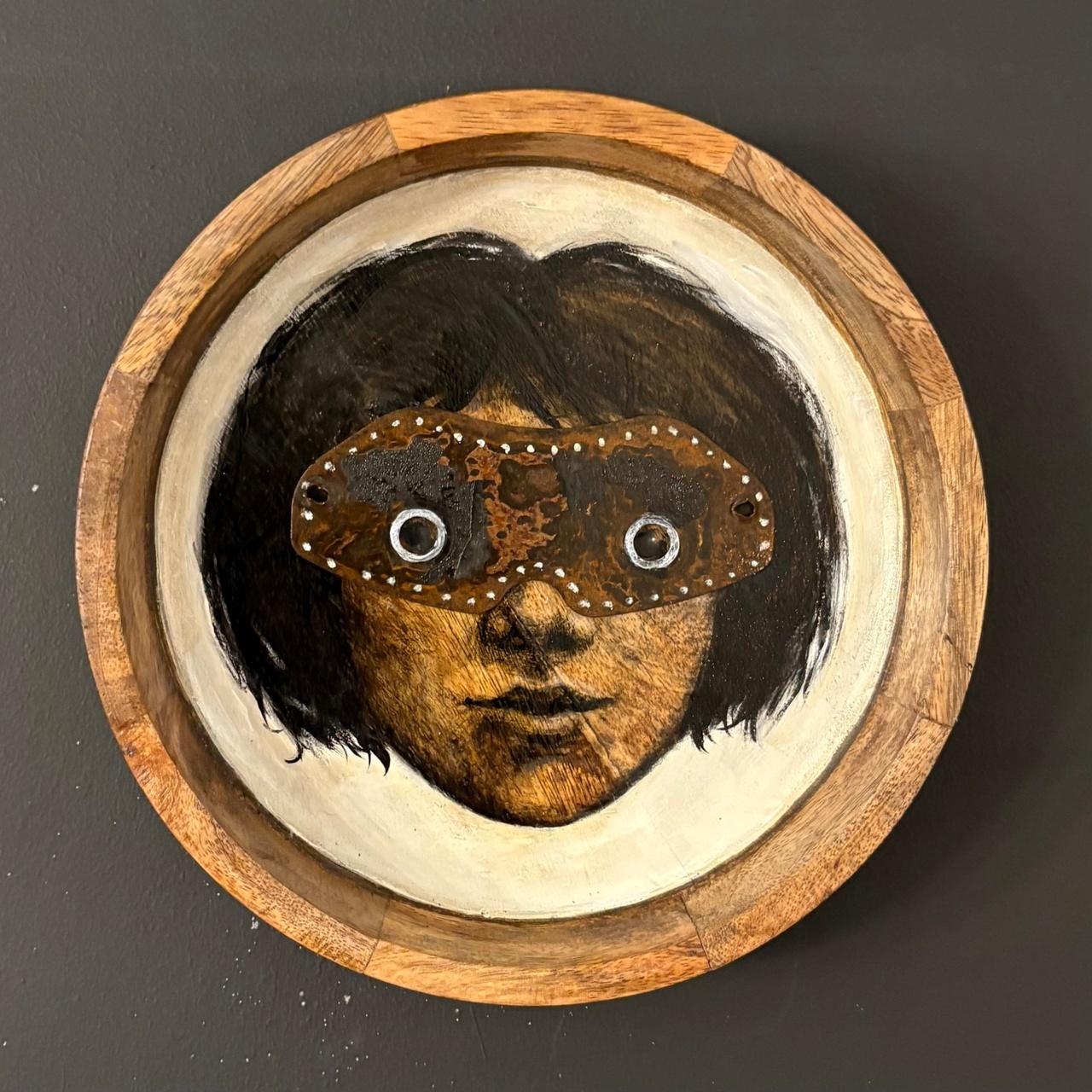 Mixed media containing gouachegraphite and charcoal on pre-treated paper stretched over a wooden frame.
